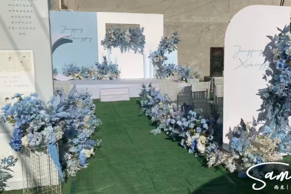 套餐区域:1.舞台区域:搭建舞台基础台,台面白色地毯铺盖,搭建桁架KT板镂空结合花艺造型,舞台摆放道具及花艺装饰; 2.观礼区:白色竹节椅40把(椅背纱),铺仿真绿草皮; 3.通道区:仿真地排花艺; 4.出场区:左侧喷绘照片结合花艺设计装饰,右侧KT板结合花艺造型装饰; 套餐设备:音响一套; 套餐备注:此套餐均为仿真花价格,可自行选择是否使用鲜花; 此套餐价格为潜江市区内报价,市区外则另行收取运输费; 此套餐价格在正月初一至正月十五期间均有涨幅。