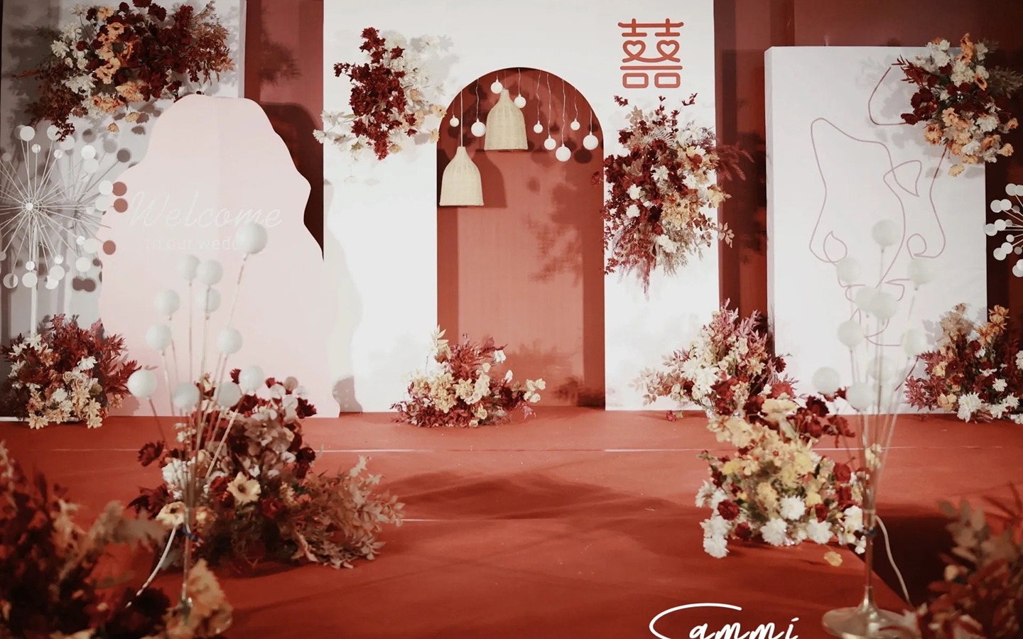 服务详情套餐区域:1.舞台区域:使用酒店舞台,舞台台面红色地毯铺盖;舞台以喷绘和KT板为背景,舞台背景上和地面处做花艺以及道具装饰;